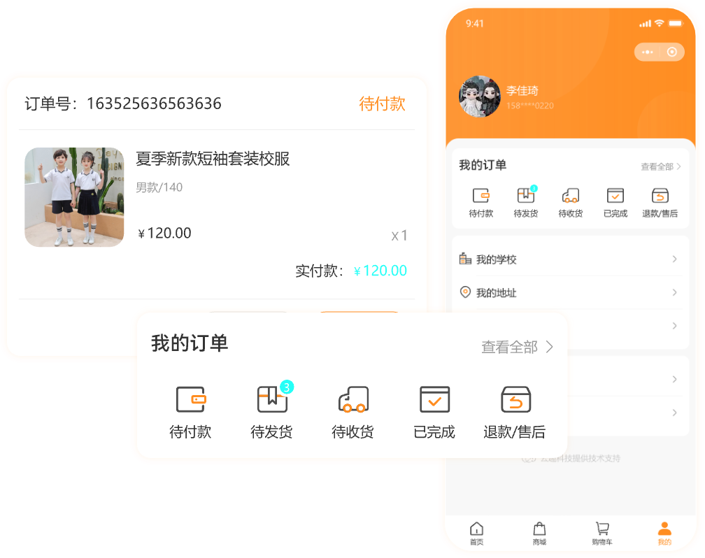 云趣校服预定系统简而言之就是一个校服小程序预定商城,是为校服企 业量身打造的校服预定收款工具,家长通过微信小程序下单预定校服, 并完成在线支付,校服企业通过云趣提供的后台管理系统进行售后服务 及运营管理,极大地简化了校服收款中的繁杂程序,使企业可以从校服 收款中解脱出来,将更多精力投入到企业自身的运营当中。
